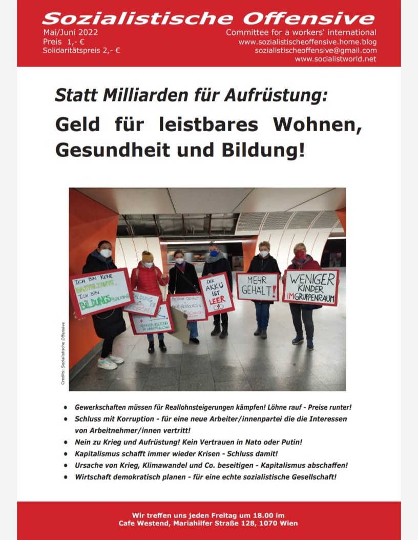 Betrieb und Gewerkschaft, Innenpolitik, Internationales „Sozialistische Offensive“ – Ausgabe Mai/Juni 2022 out now! Datum: 26. April 2022Autor: sozialistischeoffensive Sozialistische Offensive, Ausgabe Mai/Juni 2022Herunterladen Teilen mit: Auf X teilen (Wird in neuem Fenster geöffnet) X Auf Facebook teilen (Wird in neuem Fenster geöffnet) Facebook Gefällt mir Wird geladen … Ähnliche Beiträge