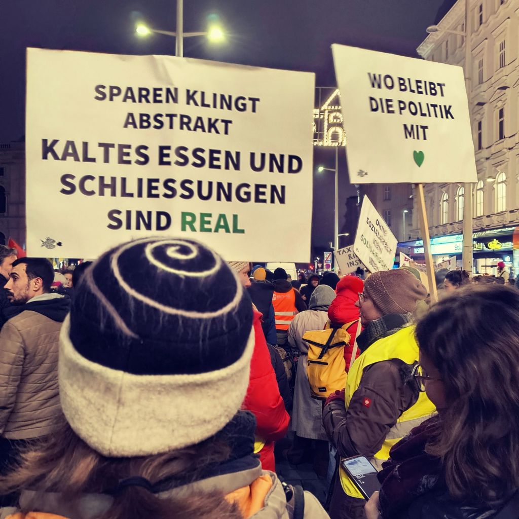 Grund für die Demonstrationen sind die von der Stadt Wien angekündigten Kürzungen. Nicht nur die Öffis werden verteuert, sondern v.a. im Sozialbereich und bei unabhängiger Kultur streicht die SPÖ-Neos-Stadtregierung im Zuge ihrer “Spar”politik. Das gefährdet zahlreiche Arbeitsplätze sowie die Existenz sozialer Einrichtungen (Suchthilfe Wien, Verein Neustart, Obdachlosenhilfe,…), Bildungseinrichtungen (z.B. Deutschkurse) sowie des Amerlinghauses oder Radio Orange.